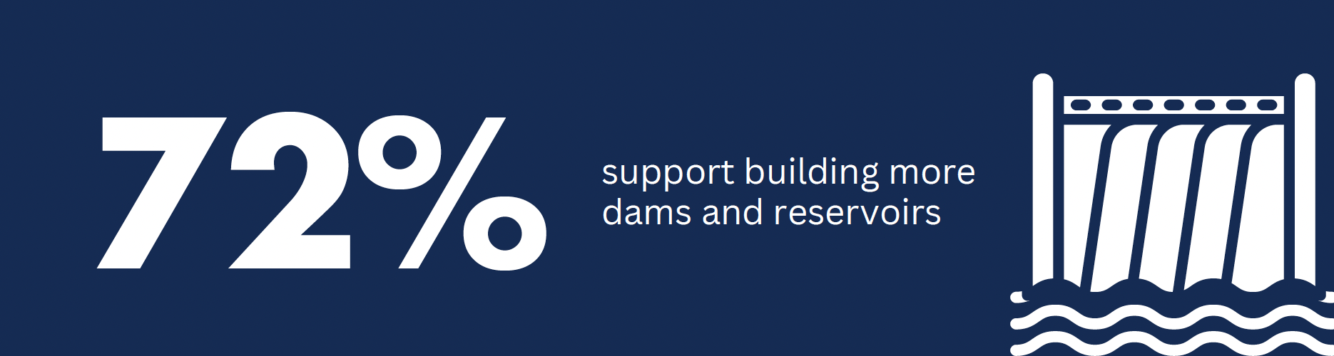 Surface storage (dams and reservoirs) are supported by seventy-two percent of voters.