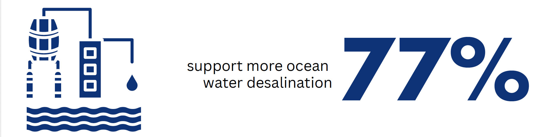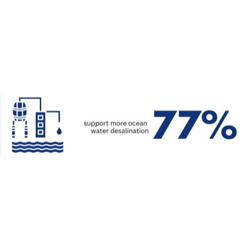Ocean water desalination is supported by seventy-seven percent of the voters.